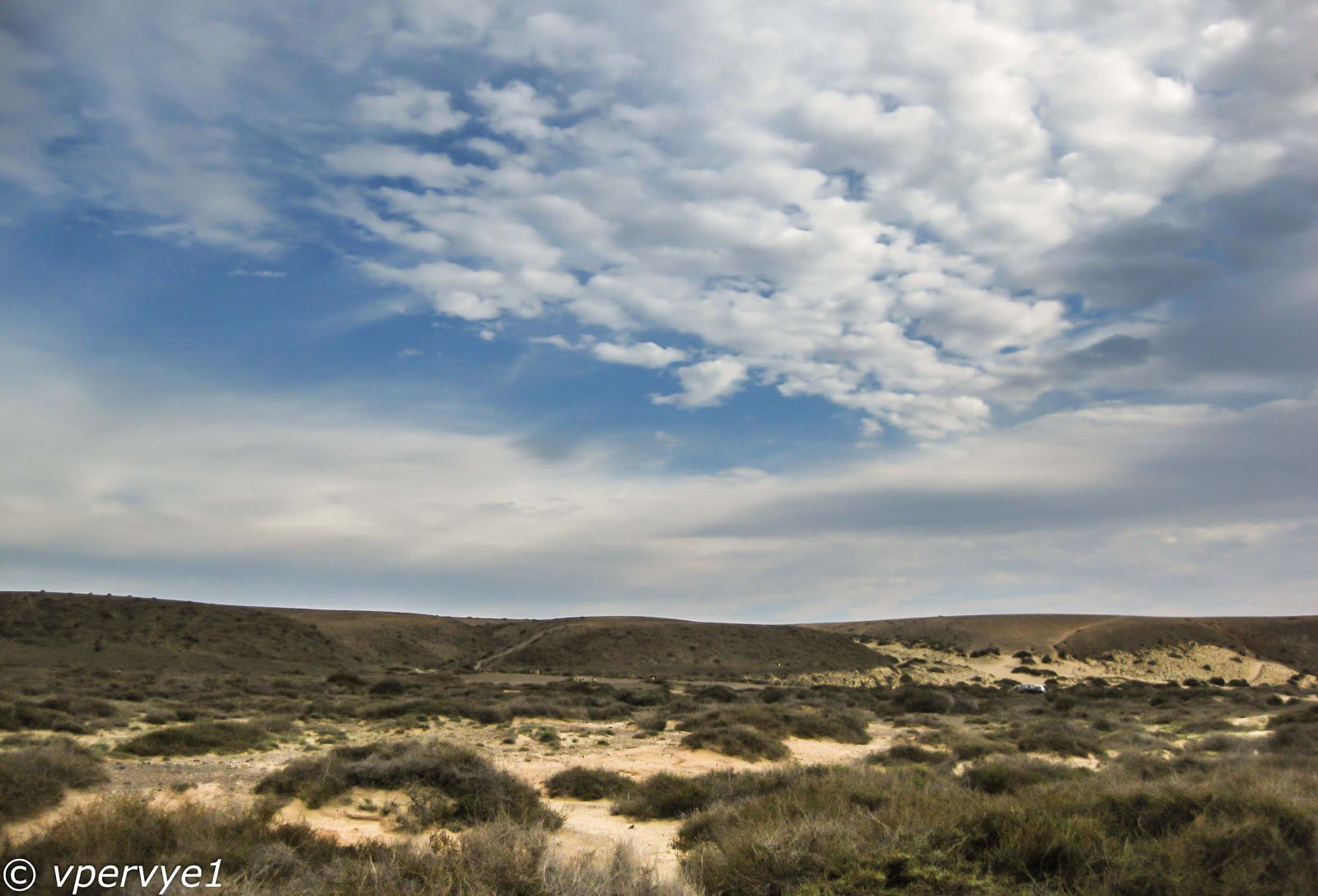 Но это лирика. По приезду мы без проблем взяли машину и поехали исследовать остров. Всё было ничего, пока мы, более менее, следовали туристическим маршрутам. Но на Лансароте городов как таковых нет и основные достопримечательности природные, так что в один прекрасный момент, уже ближе к вечеру, устав от однообразия дорог, мой водитель решил "срезать" и мы покатили через "поле".