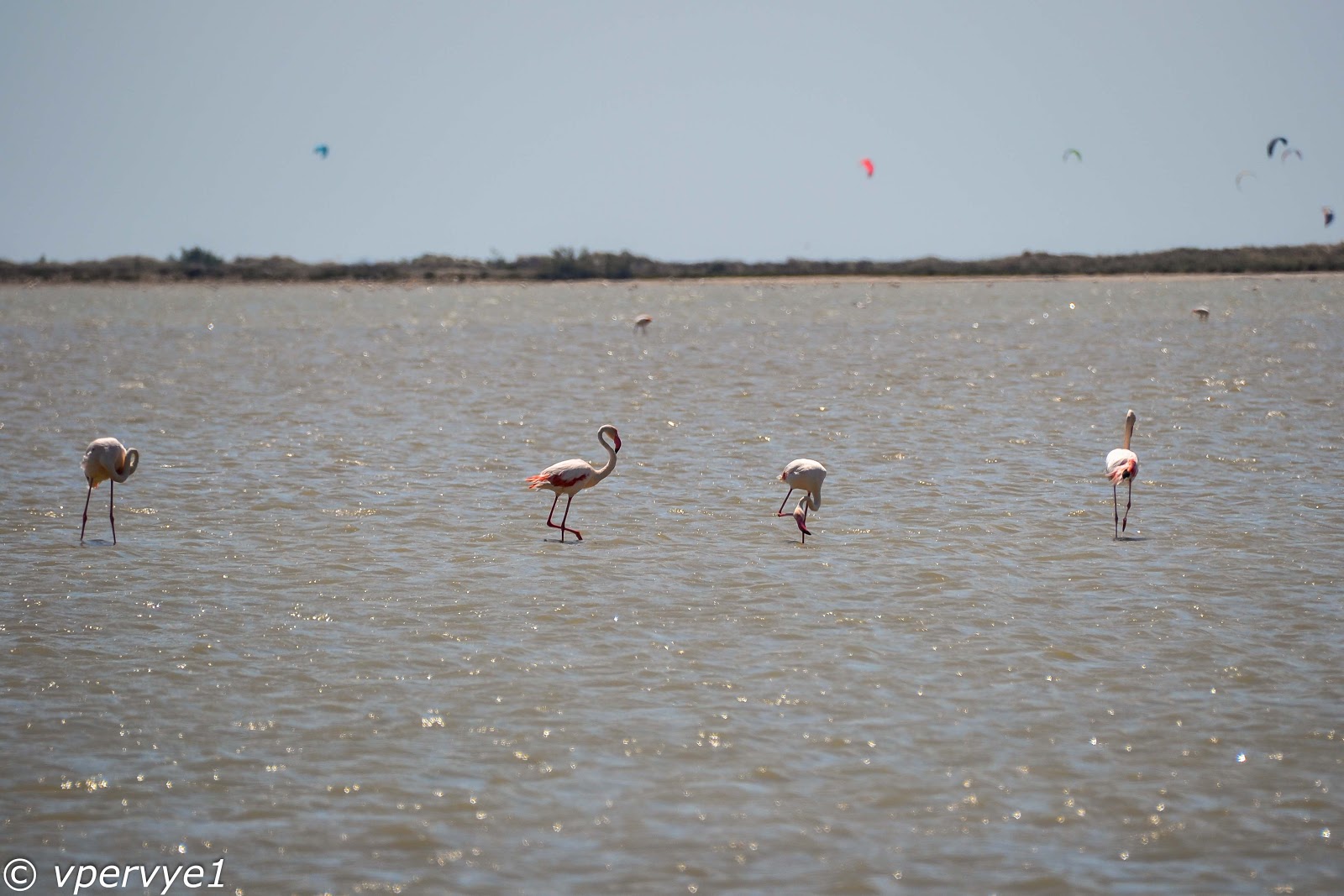 Не любят фотографироваться. Каждый раз, когда я пытаюсь к ним подкрасться они проделывают один и тот же маневр - медленно разворачиваются и так же медленно уходят. Насколько я приближусь, настолько они и удалятся. По этому я эти фотографии и не выкладывала, птиц почти не видно. А потом подумала: почему бы и нет? Почувствуйте себя в Камарге, щурьтесь от от безжалостного солнца, что слепит и сверху, и миллионами зайчиков, отражённых от мелких волн солончака. Попытайтесь рассмотреть издалека, в мареве этих гордый птиц. Ближе не получиться. Как и у меня.