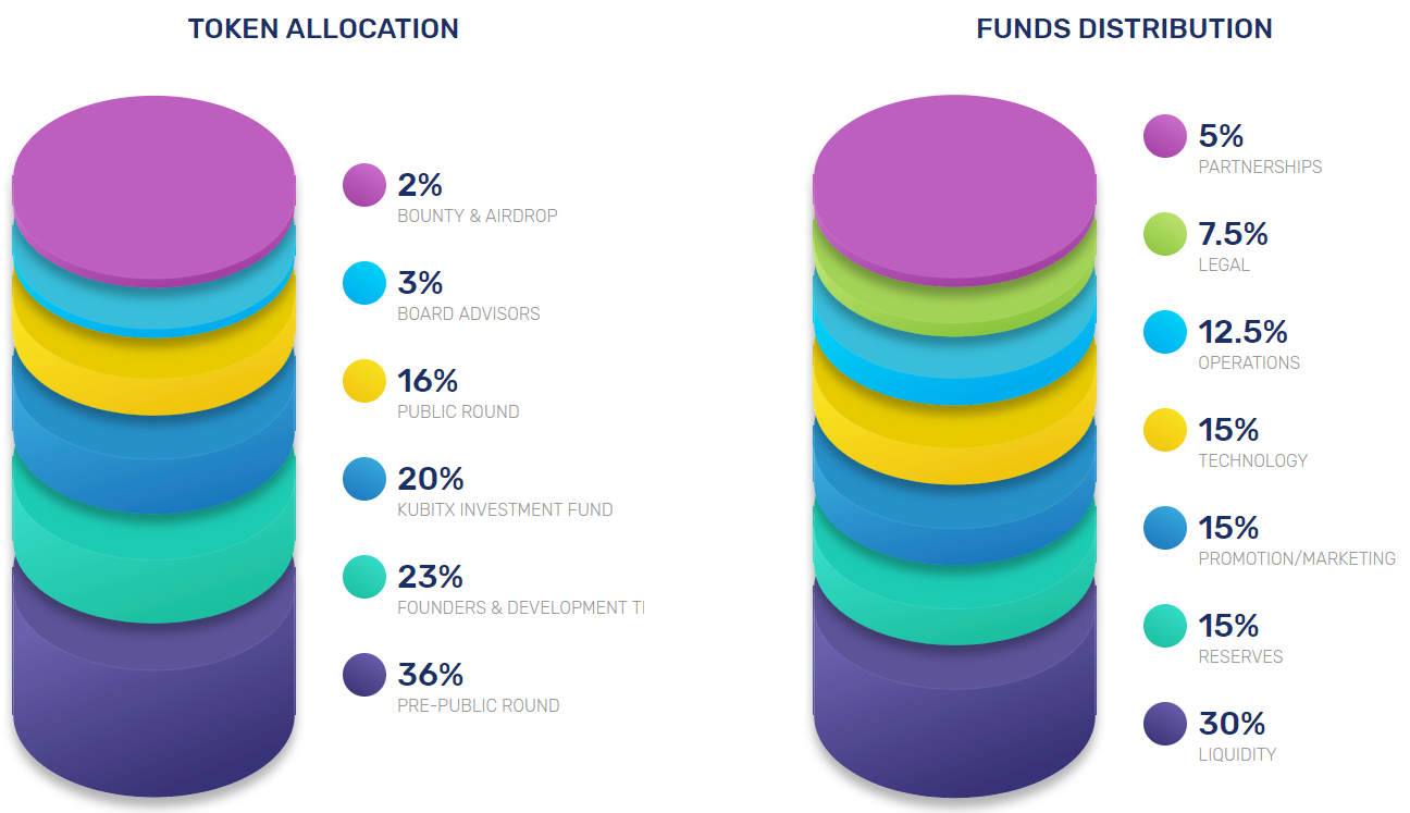 KuBitX will issue a fixed amount of its currency: 500,000,000 KuBitcoin (KBX) tokens, which are based on the ERC-20 standard. The reasons for choosing ERC-20 tokens are the current market familiarity with this standard, plus the stability of Ethereum blockchain.