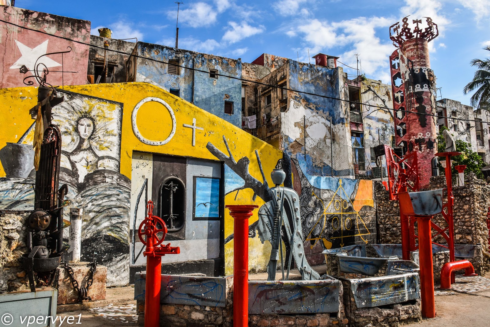 Кубинский художник, известный под артистическим именем Сальвадор и чьё творчество признаётся как "афро-кубинское" ( сам же он считает, что работает в смешении сюрреализма, кубизма и прочей абстракции) в апреле 1990 года начал выставлять свои работы в небольшом переулке около гаванского университета. Для абстракционистов на Кубе раздолье. Кто помнит советский союз и дефицит - тот поймёт.