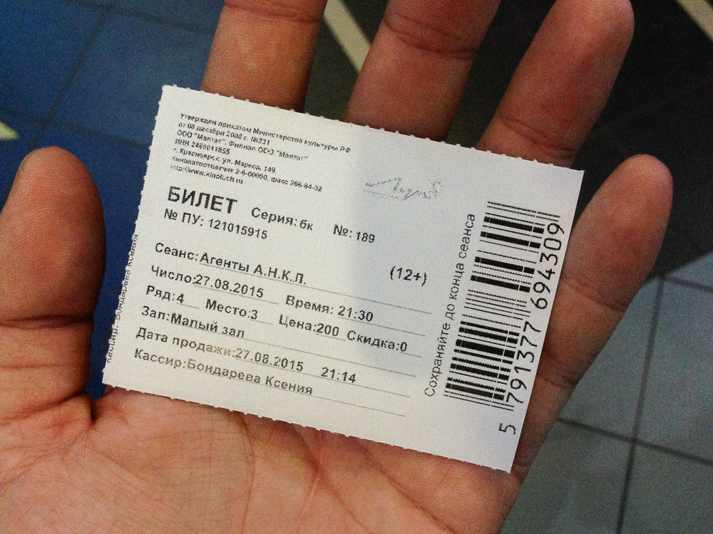 Продолжаю идти к дому. Вижу - кино. Думаю, надо бы в кино сходить, давно не был, трейлер на "Агенты А.Н.К.Л." недавно видел, прикольный. Захожу, покупаю билет, до сеанса десять минут.