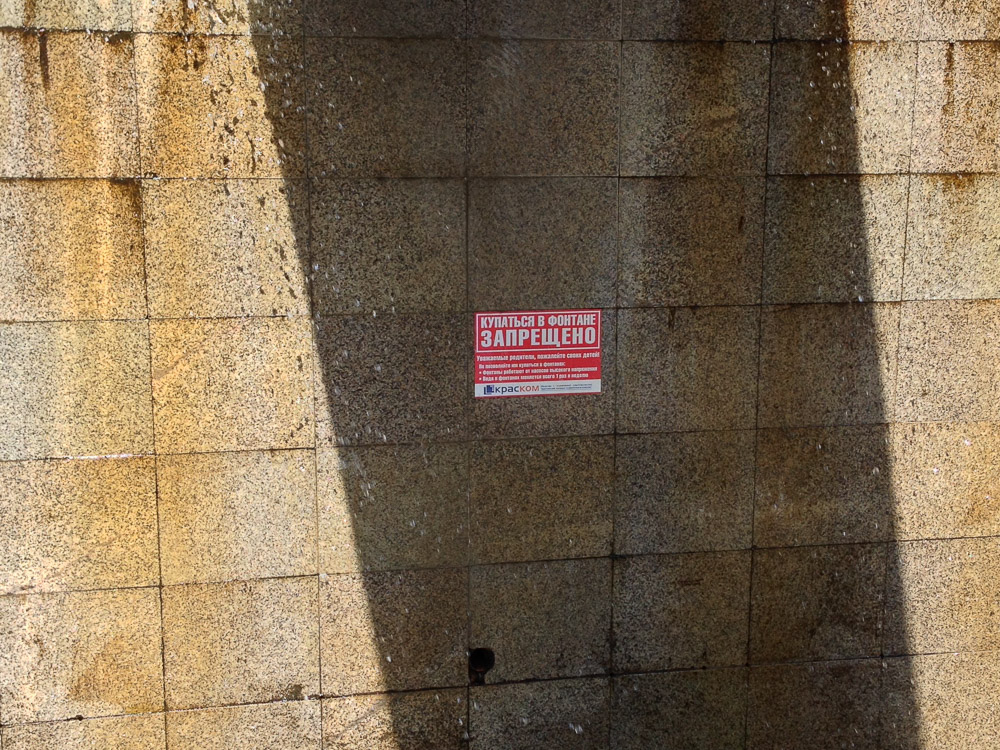 Увы, купаться в фонтане нельзя. Зато узнал, что воду меняют раз в неделю. Правда, чтобы узнать этот факт, мне пришлось залезть в фонтан, уж больно шрифт маленький.
