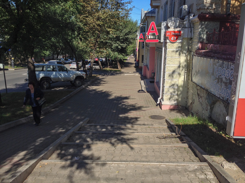 Больше не буду. Покажу лучше то, что я видел только в паре мест, и везде оно меня дико бесило. И вот теперь в Хабаровске. Это отсутствие одного перехода на перекрестке. Три перехода нормальные, а одного нет. Для того, чтобы люди не перебегали, туда еще и оградку поставили.