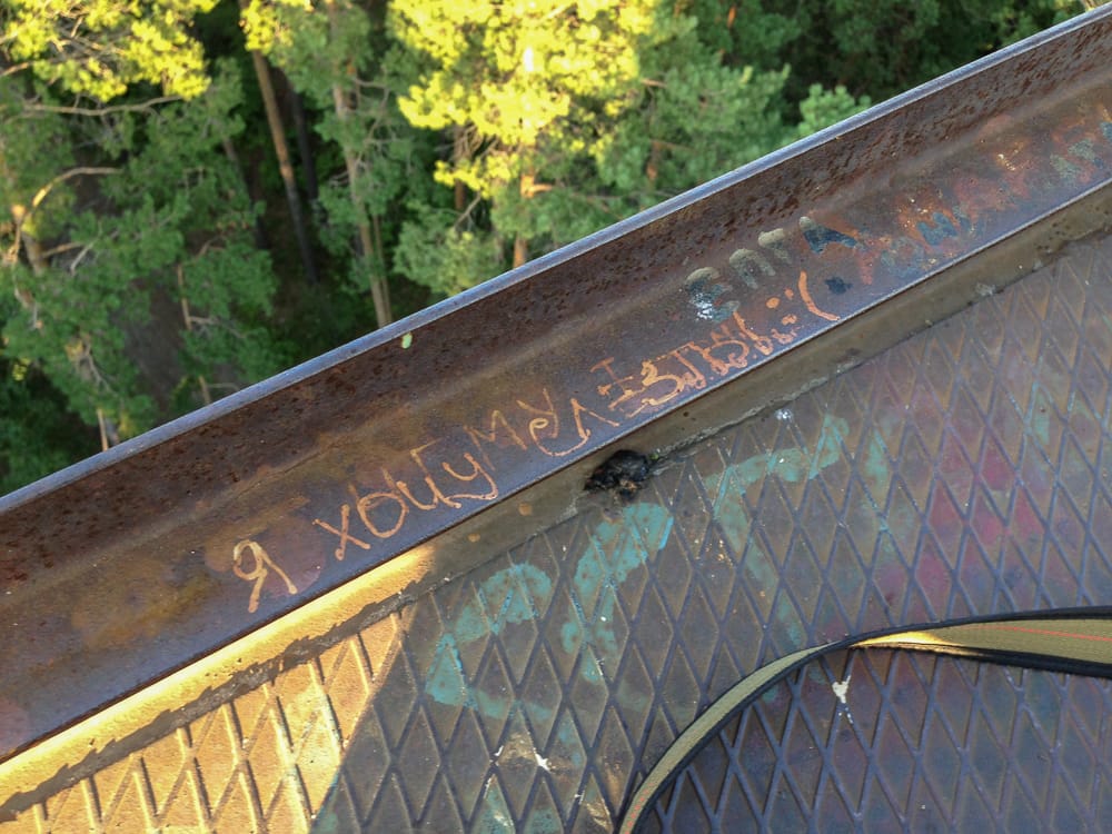 В общем, ходили-ходили мы по лесу, и нашли старую геодезическую вышку. Ну не случайно, конечно, мы к ней, в общем-то и целенаправленно шли. А потом лезли. Кстати, сюда же залезал Каганов.