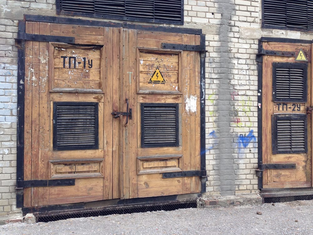 Чем-то мне дико понравившиеся деревянные двери на трасформаторной будке: