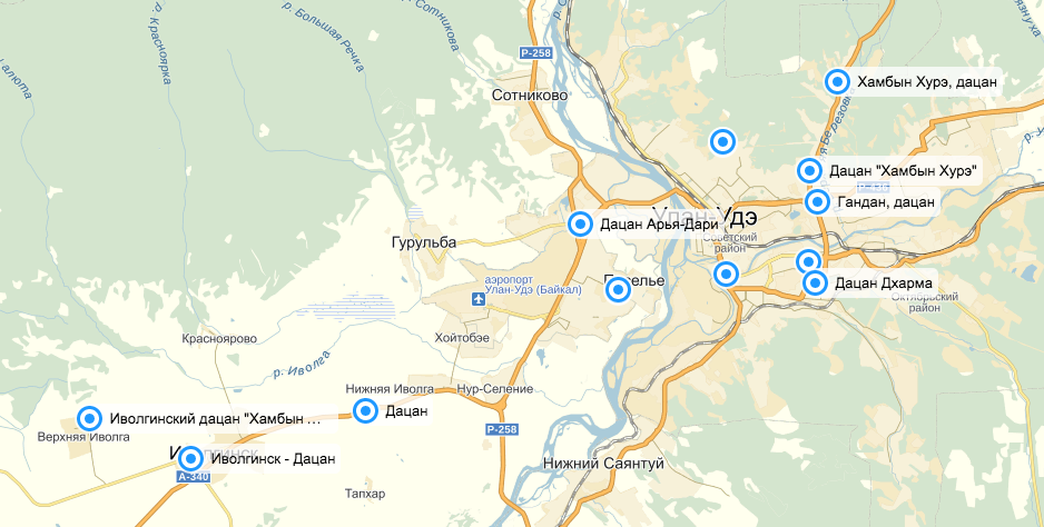 Только в окрестностях Улан-Уде их с десяток(при желании на карте можно найти и Гурульбу):