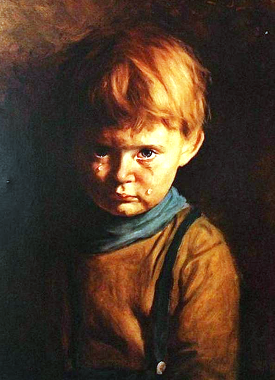 Нужно заметить, что репродукция на превью не единственный вариант, это целая серия картин с плачущими детьми. Нарисована она не несколько веков назад, так что это не древний артефакт, который за столетия мог бы обрасти таинственной историей, все случилось не так уж давно – в середине ХХ века.