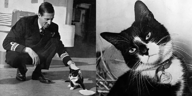 Знакомьтесь - это корабельный кот по кличке СЭМ(Оскар), служивший в годы Второй мировой войны на германском линкоре, британском эсминце, а позже на авианосце, пережил гибель всех трёх кораблей и умер на берегу в 1955 году.