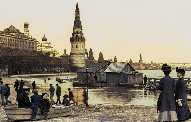 Представьте: вы живёте в центре Москвы, просыпаетесь утром намедни Пасхи, а за окном — река. Вода поднялась на четыре метра выше обычного уровня, затопив Замоскворечье и Болотную площадь, а часть Кремля ушла под воду. Москвичи не паниковали, а восприняли это как развлечение: катались на лодках по затопленным улицам, а извозчики предлагали "водное такси". Причина наводнения — резкий ледоход и обильное таяние снега. Такие наводнения случались почти каждую весну, и москвичи привыкли к ним, заранее перенося ценности на верхние этажи и запасаясь лодками.