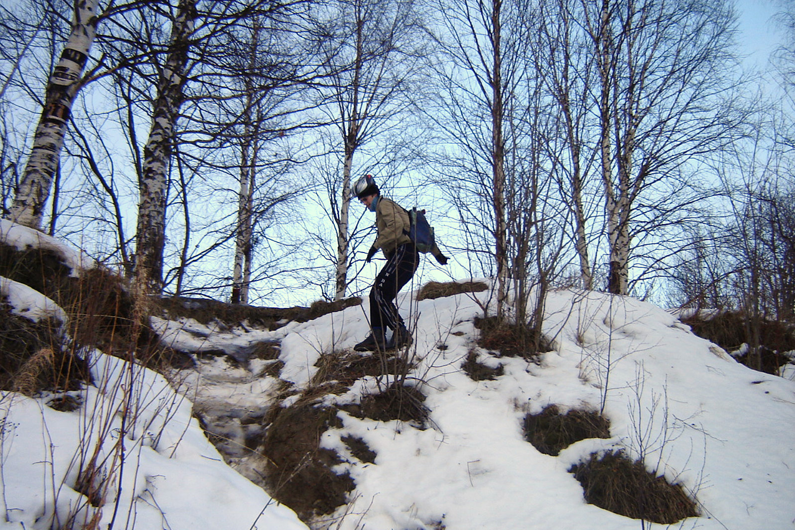 Это не стало особой преградой для настоящих фрирайдеров. Сашка благополучно перелез через колючку, правда слегка зацепившись, а я банально обошёл сие "препятствие в том месте, где оно упирается в берег. И вот мы начинаем триумфальный штурм плотины.