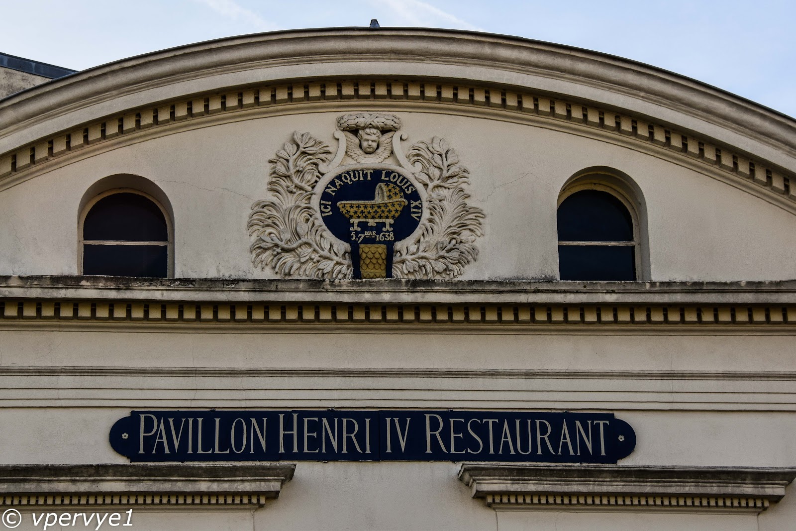 В его "Трех мушкетёрах" король ездил охотится на оленей именно в этот лес, здесь стоял любимый Людовиком XIII Сен-Жерменский дворец, от которого до наших дней сохранился только павильон Генриха IV, здесь же родился его сын Людовик XIV. В связи с радостным событием, поселению был подарен вот такой няшный герб.
