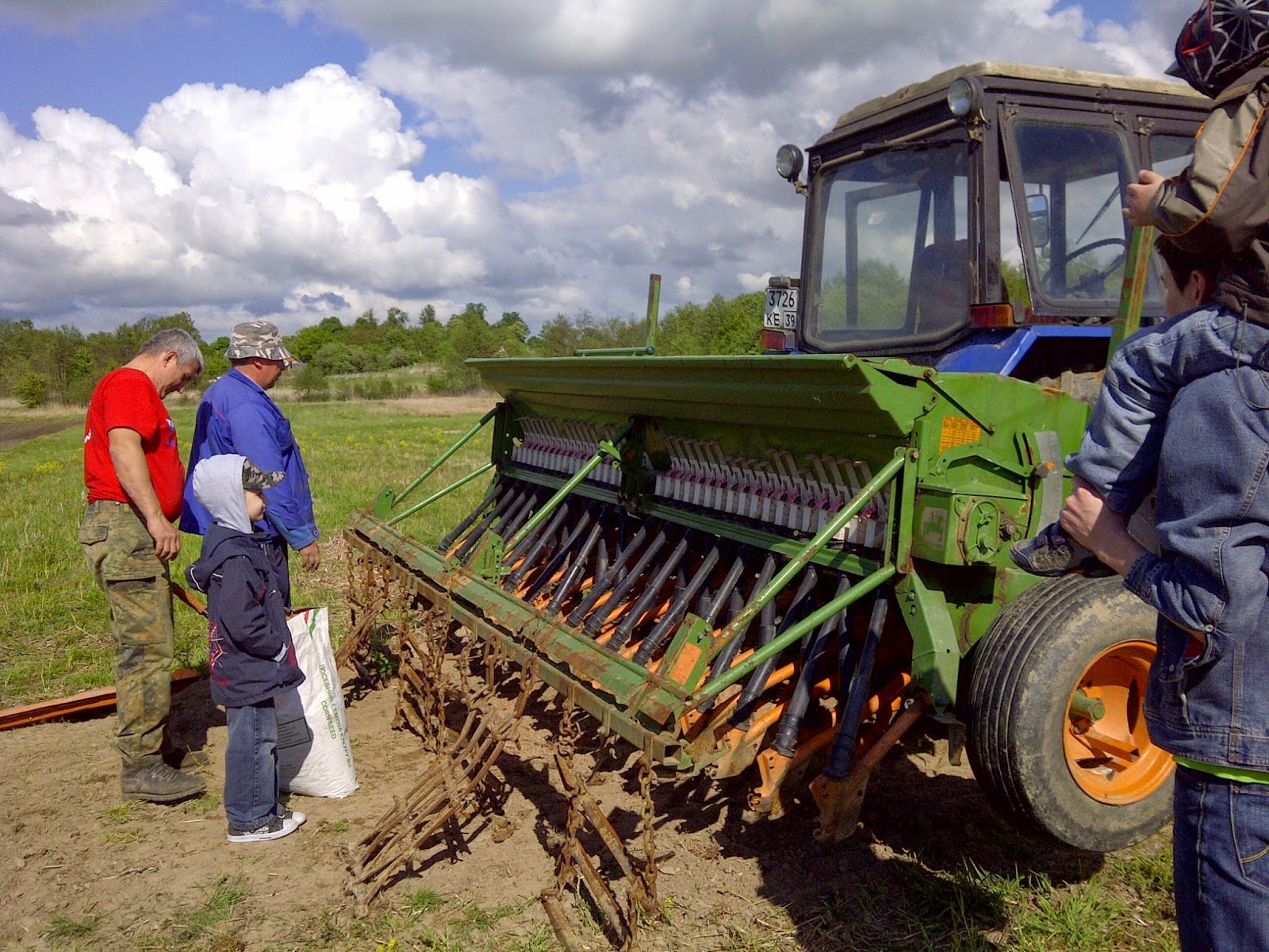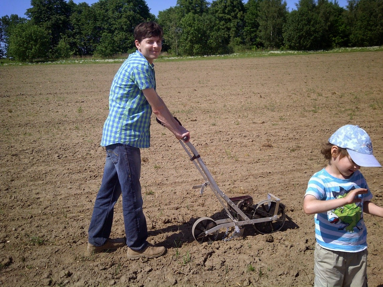 Сразу же возник первый конфуз - колхозная сеялка. В инструкции к ней не было ни слова (на немецком) о том какие параметры задавать для посева кукурузы. Тракторист и представитель колхоза тоже были не в курсе как ее настраивать. В итоге, провозившись без толку 4 часа, трактор с сеялкой уехал, так ничего и не посеяв и перед нами замаячила грустная перспектива - сеять 2 гектара вручную. Благо хоть вспахали поле трактором.
